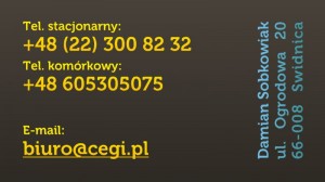 Zapraszam do kontaktu, chętnie doradzę, jaki rodzaj reklamy będzie najlepszy dla Państwa branży, bo nie zawsze można wykorzystać je wszystkie. Tel. +48.605305075 , stacjonarny: +48 (22)3008232 , e-mail: biuro@cegi.pl , www.cegi.pl
