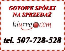 Spółki z 2016 roku z Kapitałem Zakładowym 5.000,00 zł cena 4.500,00 zł brutto VAT-7 CIT-8 Sprawozdania Finansowe składane na bieżąco www.biurro.com mobile: 507-728-528 email: biuro@biurro.com
