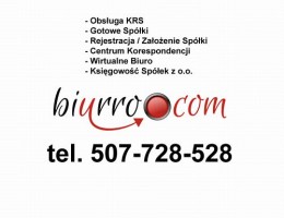 Oferujemy kompleksową usługę szybkiej i skutecznej rejestracji spółek prawa handlowego w Krajowym Rejestrze Sądowym w cenie 2700 zł Gotowe Spółki od 3500 zł tel. 507-728-528 24/h lub email biuro@biurro.com www.biurro.com